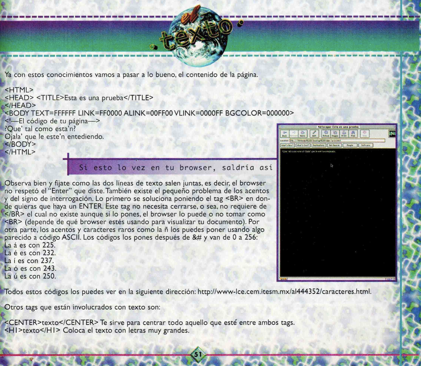 I started playing with the code and looking for more information. That magazine became a Bible to me. Afterwards, my mother also bought me an HTML book, what I learned in that book I still use it to this day.